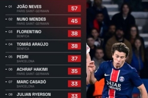 1.若昂-内维斯(巴黎圣日耳曼)— 57次