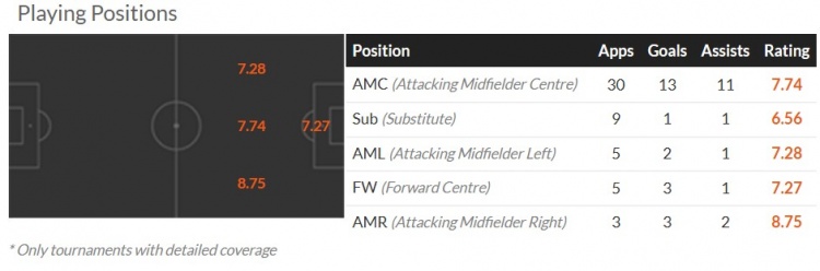 除了上面谈到几个基础能力对比外,维尔茨核心定位很明确。在勒沃库森哈维-阿隆索就很好演示怎么去激活维尔茨,作为指挥,维尔茨在前腰位置活动区域广泛,具有肋部游走及跑动实力,可很好对敌主要区域给出全覆盖。虽然速度不快,可他总是能够出现在关键点,这是专业人士对他赞誉有加的根本。
